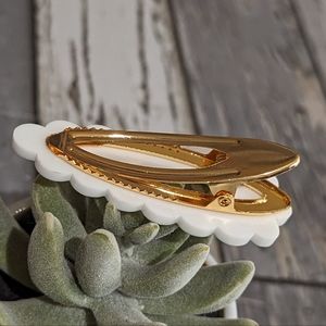 On a golden hair barrette clip.