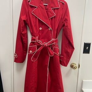 Dick and Jayne Los Angeles red trenchcoat women’s size small with white piping vintage