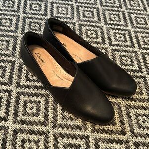 NWOT Clarks Juliet Palm Slip-On Black Leather Shoes 🖤