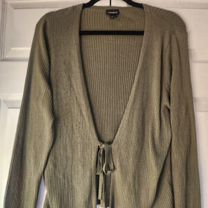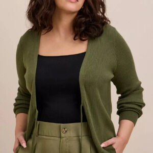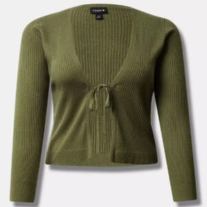 TORRID Cardigan Tie-Front Ribbed Sweater in Olivine - Size 1 (14/16)