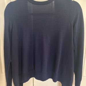 Beautiful J. Crew reversible cardigan, size XS. Item is navy blue, and can be worn buttons in front or back. It is in excellent condition!