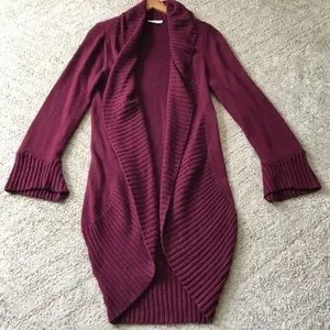 BRYN WALKER Cashmere + Angora Maroon Long Duster Cardigan Sz M