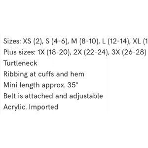 NWT- Venus Belted Sweater Dress, Size 1X.
