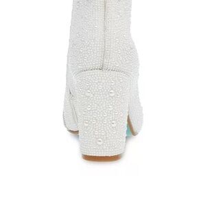 From site: Your new statement boot has arrived. Glitz and glam has never looked better than on these disco-ready booties by Betsey Johnson. True to Betsey's signature funky style, the Cady Evening Booties are completely encrusted with sparkly rhinestones that catch the light from every angle. A pointed toe and sturdy block heel bring this silhouette into the so-now category. Consider this pair the next-level outfit-completer your wardrobe needs. They'll turn your basic blue jeans and tee into a Rockstar-approved ensemble.