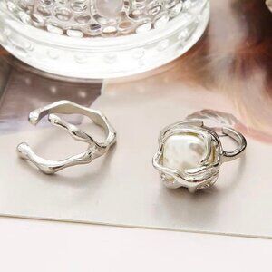 2pc Cresent Moon and Beautiful Faux Opal Accent, Adjustable Ring Set