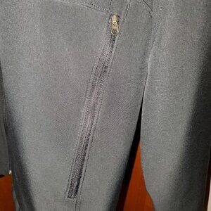 Men's Waterproof North Face Jacket - Black size Large. The photos do not do it justice as some of the shots of the jacket appear to be gray. However, except for the logo, the entire jacket is black. There are 3 zipper pockets on the front; one is a left breast pocket and the other two and side pockets. Very warm. Zippered front. 100% polyester, 4% Elastaan Voering. Measures approximately 24 inches pit to pit, 27 inches long and the sleeves are roughly 26 inches. Excellent Condition