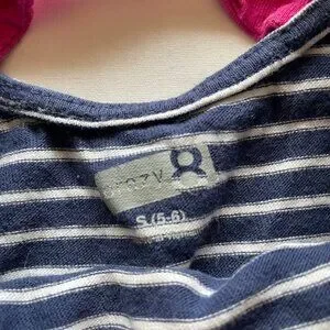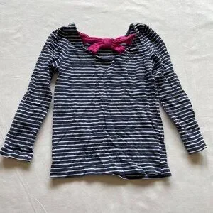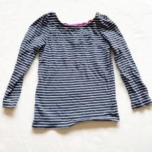 Gently used. Standard wear. Navy blue striped long sleeve shirt. Crazy 8 size 5/6. No holes or stains. Smoke free home.