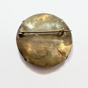 This is a stunning, antique Victorian hand painted brooch. This one is unique as I have not run across pink or daisies before! To pass the time the Victorian ladies would paint lovely pieces. This piece is round with pink scalloped edging. A very pale green is in the center. Green flowing leaves and vines are topped with adorable white daisies! This has a metal back that looks like brass. It closed with a C clasp. Lovely addition to your collection!