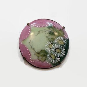 Victorian Brooch, Hand-painted, Porcelain, Flowers, Daisy, Pink, C Clasp, Unique