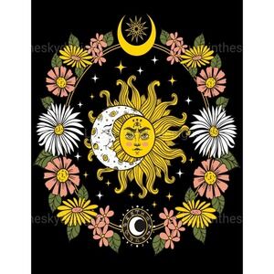 Moon Sun Daisy Celestial Pink Black Gold Art Print 8.5x11