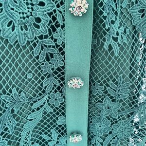 Gorgeous fitted lace dress with embellished buttons running down the front. Crystal detail at collar. Perfect for formal event such as christening, baby shower, Christmas celebration or just for a function. Includes slip dress underneath. Worn once to an event.
