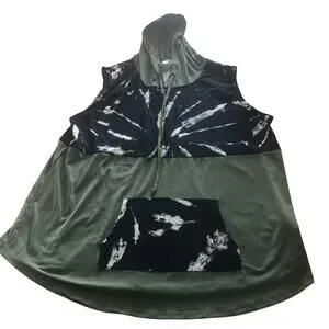 Lularoe 3XL Brittany Hoodie Sleeveless Pullover Geometric Army Green