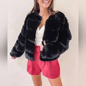 Bring cozy-chic to all your nights out this season! Our Janet Faux Fur Jacket in Black is made of a soft, faux fur fabrication with a cropped silhouette. Perfect for throwing over all your evening gowns, this plush number will be a must have. For your upcoming dinner parties to date nights, complete with a sparkly mini bag and delicate statement jewels.