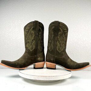 Lane SANDAGA Womens Cowboy Boots in Olive Green Brown Suede Leather with a Western Snip Toe and an 11" Mid Calf Shaft