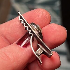 Vintage sterling silver MOP shell gladiator left facing cameo etched tie clip