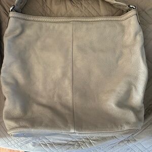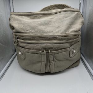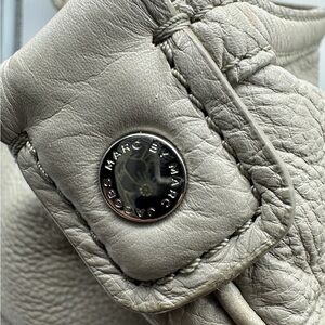 Stylish Marc Jacob hobo shoulder bag. Soft beige leather. Front zipper pocket.