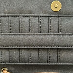 Inside has 7 card slots, 2 large slip pockets, and 2 zippered pockets.