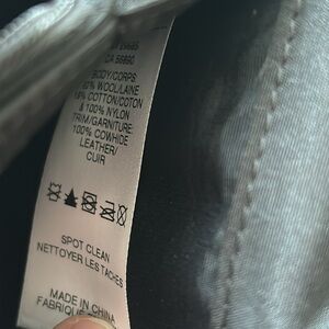 Never been used, however from being in storage the l leather back has a few scuff marks; and the interior has a few minor scuff marks as well.