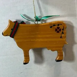 Hand Made Wooden Cow Christmas Ornament