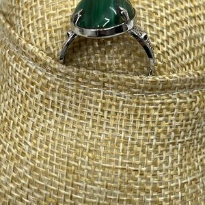 Vintage Sterling Silver Green Malachite Ring, Prong-Set Oval, Size 7