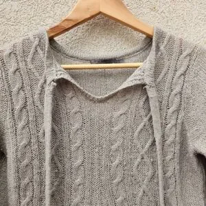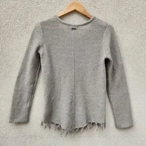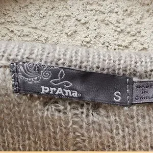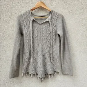 PRANA Womens Shelby Poncho Sweater Small Gray Wool Cable Knit Boho Fringe Top