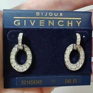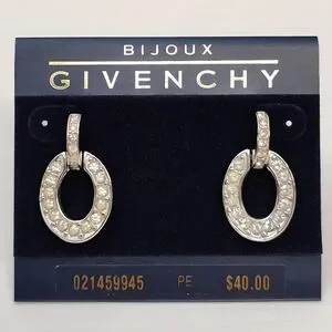 Vintage Bijoux GIVENCHY Silver tone Open Circle Pave Drop Earrings POST BACK NOS