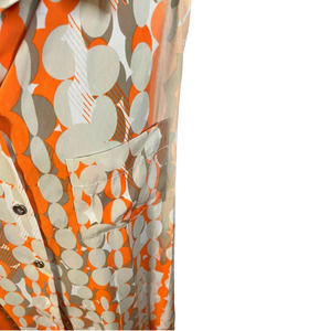Super cute, button front, sleeveless, collared, retro print with silk-like fabric. Extra lightweight and would be great for hot summer days and traveling. EUC, looks new, no stain, tears or thinning/wearing of fabric.