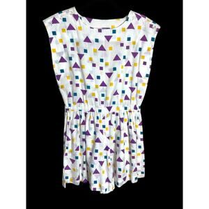 Vintage 80s White Short Romper with Colorful Geo Pattern