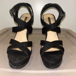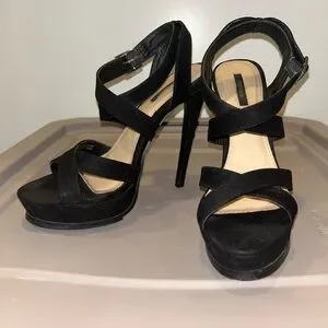Black platform heels with ankle strap and buckle. Condition: 7/10 Material: Suede