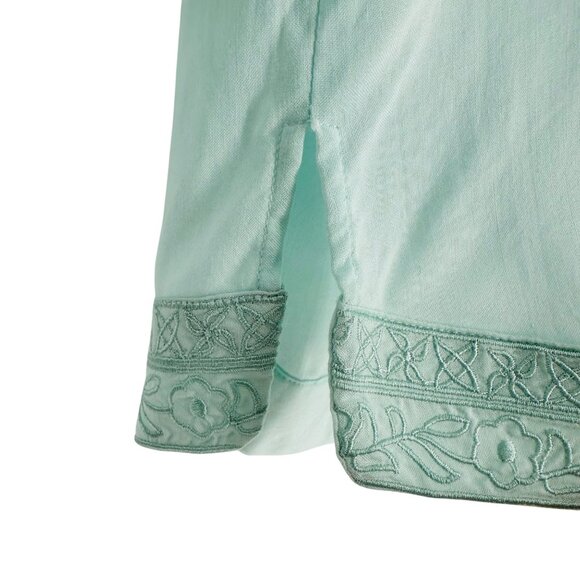 Tavik Aqua Blue Floral Embroidered V-Neck 3/4 Sleeve Split Hem Beachy Tunic XS