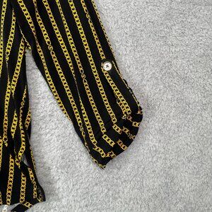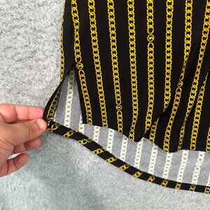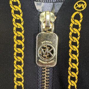 Michael Kors Women Half Zip Tunic Blouse Black/Yellow Chain Print Size S