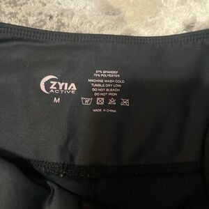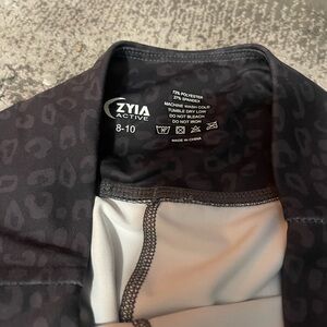 Zyia lot Gray Ombre Leggings, black leggings, and white sports bra