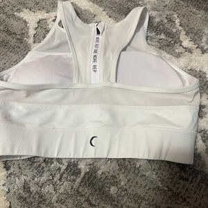 Stylish gray ombre leggings. Perfect for workouts or casual wear. Comfortable and trendy.. Also black leggings with a side stripe detail. Both are M or size 6-8, white sports bra is a large. Excellent condition, no signs of wear.