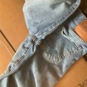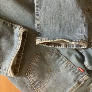 Levi’s 512 jeans; size 34x34. Good condition. Gentle wear; no holes, rips or tears. No stains. Wear around pockets; ankles is by design of manufacturer. Last picture shows slight fabric pulling in groin area, but it’s not noticeable in wear or visible in wear. Price reflects this. Otherwise great condition!