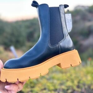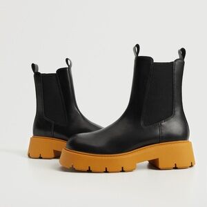 Mango Ankle Boots Size 37 Black Elasticated Sock Chunky Contrast Soles 37/6.5