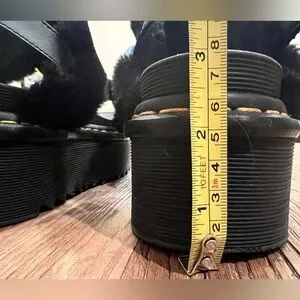 Dr. Martens Francis Fluffy F Fur Leather Sandals, Black, Like New, Size 7-8 /38