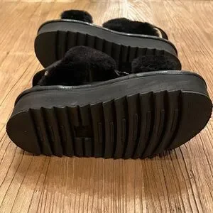 Like new and so fun, with faux fur and adjustable leather straps, these are a great platform sandal!