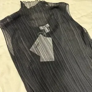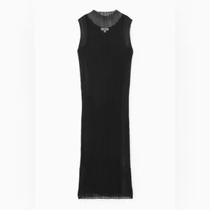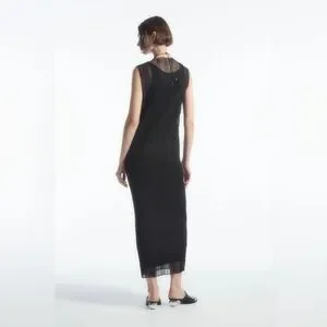 COS Sheer Plissé Midi Dress (Black) Size Large