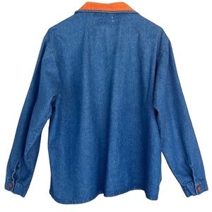 Tantrums Vintage, Autumn Fall Thanksgiving Embroidered Detail, Denim Shacket Top