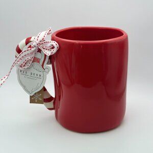 Jolly Christmas mug with a candy cane shaped handle by Rae Dunn
