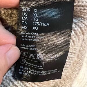 This H&M cream sweater features a square neckline, ruffled shoulders, and a diamond cable knit pattern on the front panel, creating a cozy and stylish look. Excellent pre owned condition.
