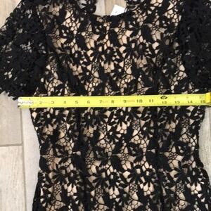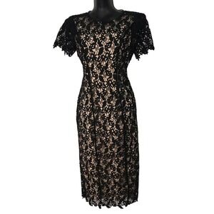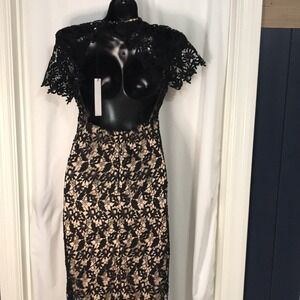 NWT NSR Nude slip with Black lace overlay Short sleeve MIDI dress size Medium