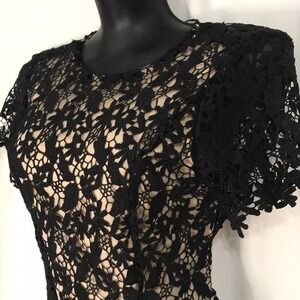 NSR Nude slip with Black lace overlay Short sleeve MIDI dress size Medium