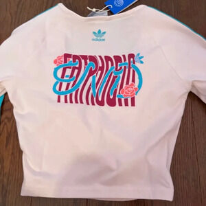 Adidas Long Sleeve Original Floral 3 Stripe Faux Wrap Top Sz XS