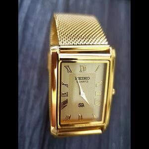 Vintage Tank Rectangular Slim Seiko Champaign Dial Milanese band Mens Watch 🌟