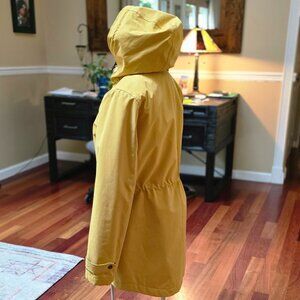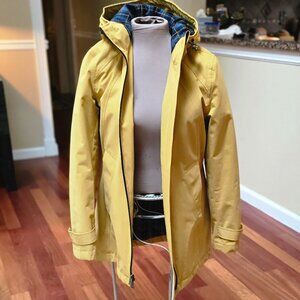 Like New!! I've kept it in my closet for 1yr and worn once. Excellent condition. Coat has a waterproof suede like material that is soft but holds its shape. Blue plaid inlay with brass accessories
