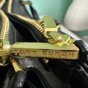 Tory Burch Robinson Double Zip Tote Bag in Black Leather