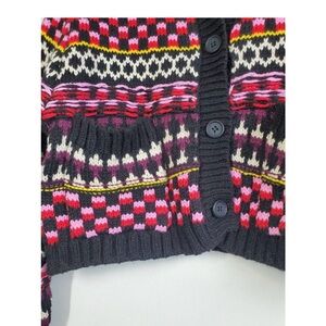 ZARA WOMEN'S COLORFUL CHUNKY KNIT BUTTON DOWN CARDIGAN BLACK--SIZE SMALL