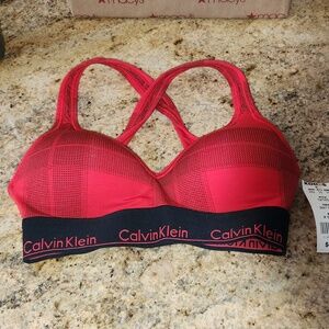 Calvin Klein PLAID Red & Black Printed Bra. NEW. Lightly Lined