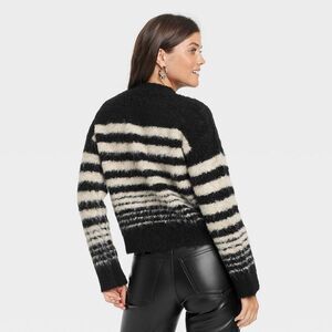 Women's Boucle Crewneck Pullover Sweater - Univers Black/Cream
